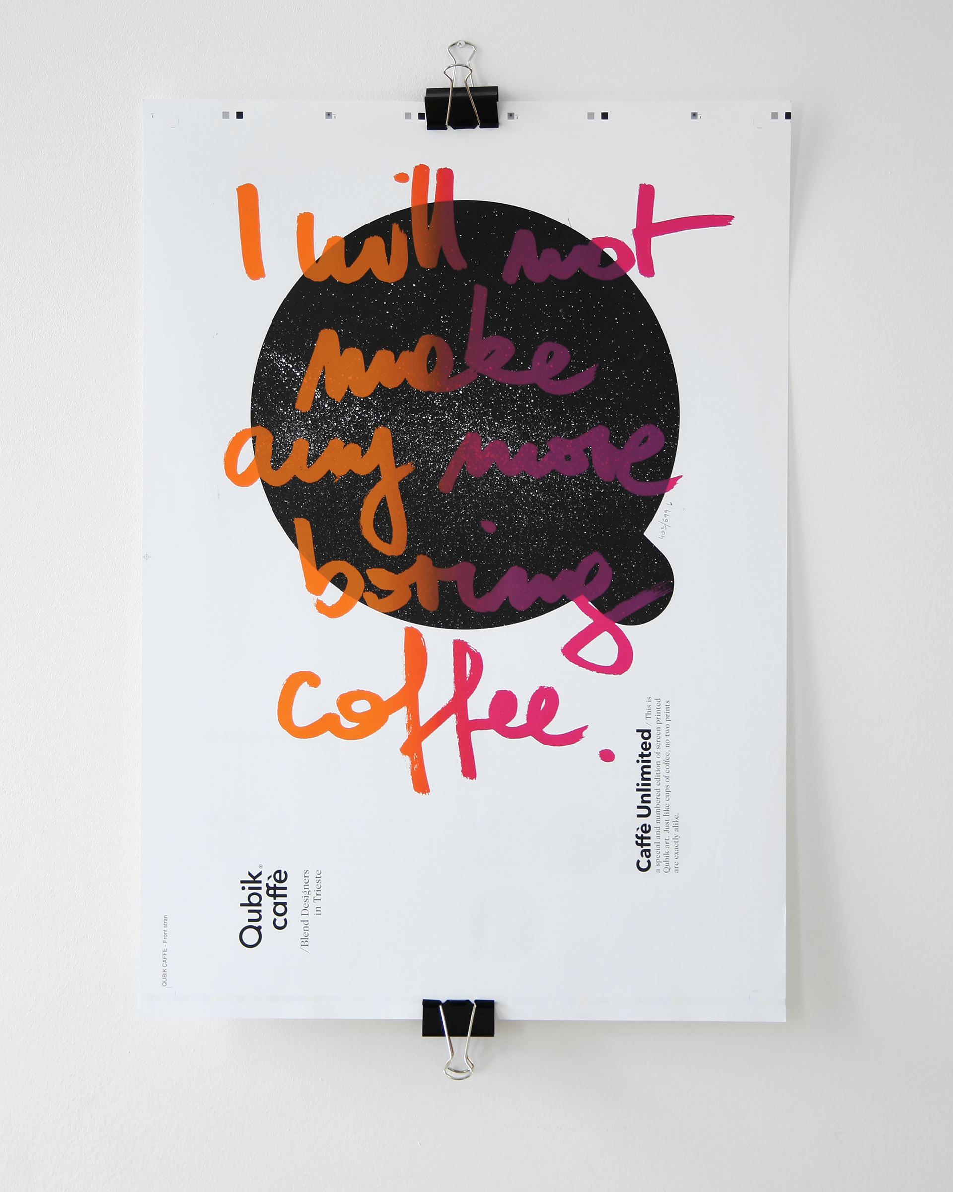A series of numbered one-off screen-printed give-away posters made in occasion of the 2014 TriestEspresso Expo (THE espresso coffee fair in Italy).